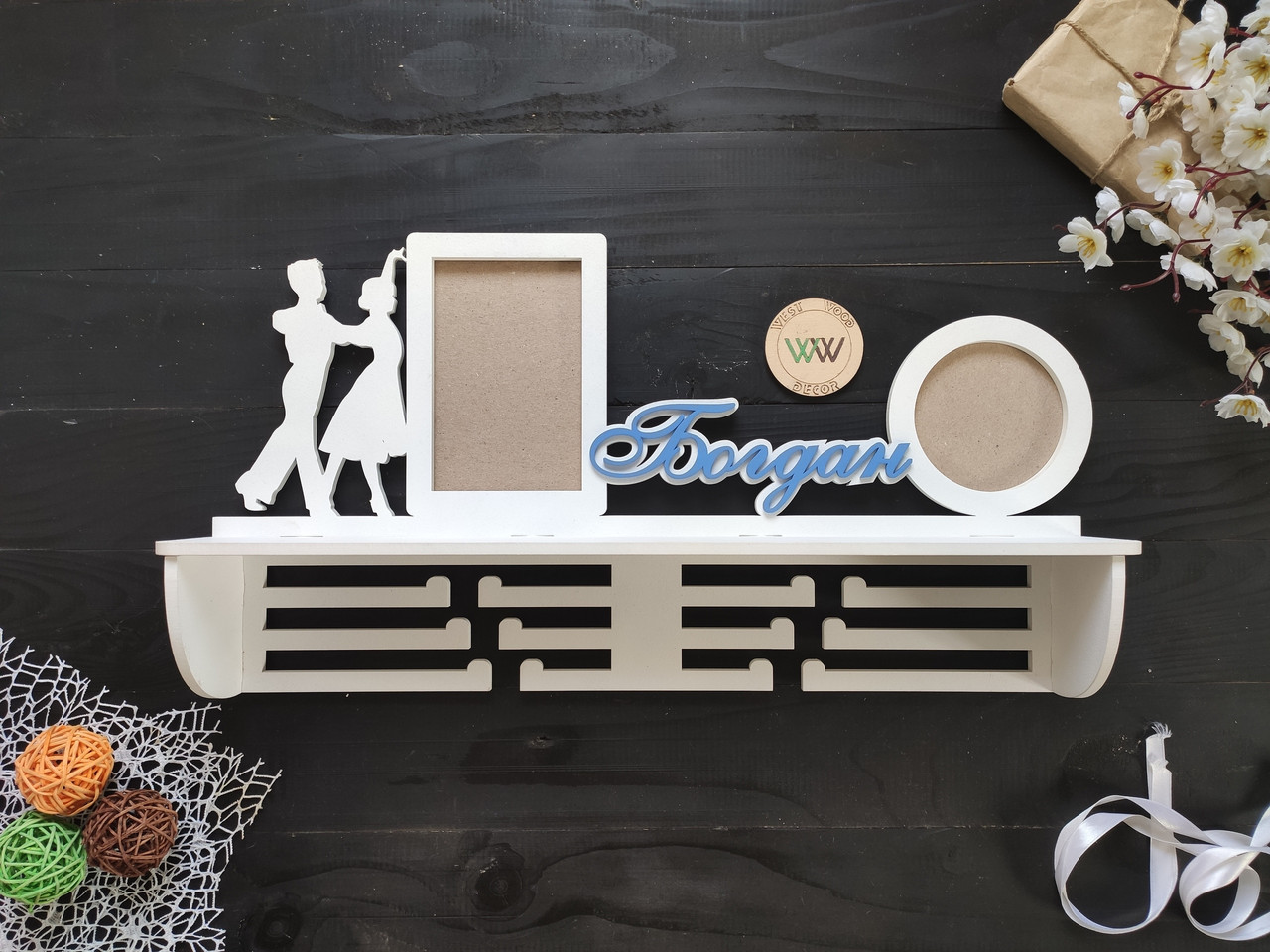 Поличка для кубків, іменна медальниця з фоторамками, парні танці, Богдан (будь-який вид спорту, колір і текст)