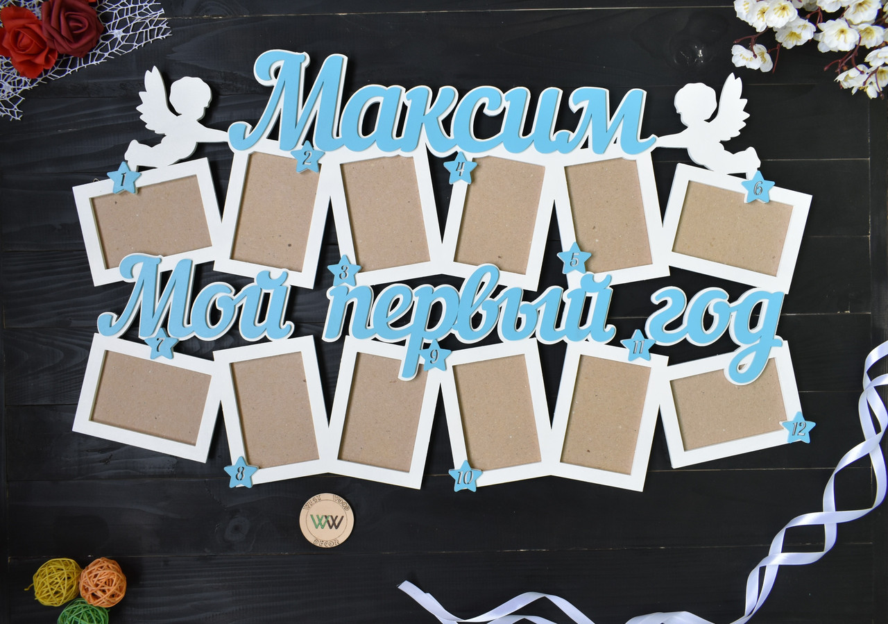 Дитяча фоторамка "Мій перший рік" з ангелятами на 12 рамок. 12 місяців